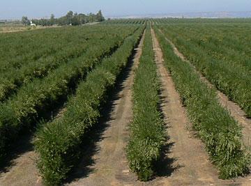 By keeping the canopy width within the available umbrella net of a tree shaker, less fruit is lost during harvest as well.