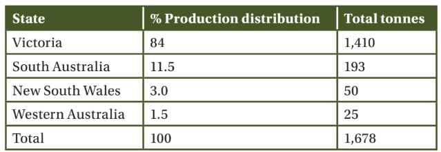 About 84 per cent (1410 tonnes) of Australia’s nashi production comes from Victoria’s Goulburn Valley, with approximately 20 commercial growers throughout the country.